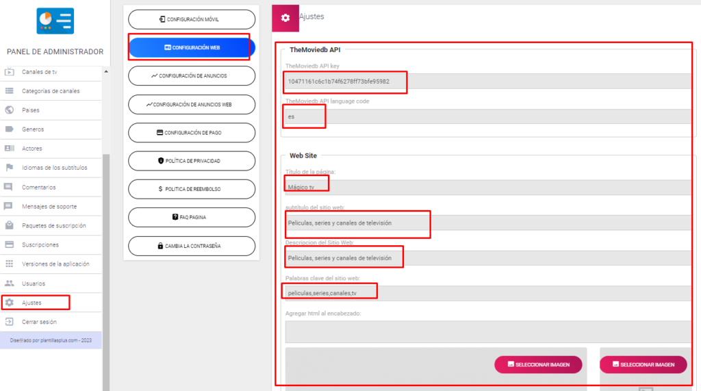 - Título del sitio web: el título de Magico Tv (se mostrará en el encabezado de la página)